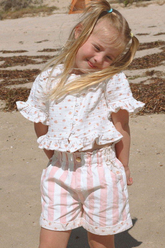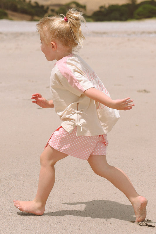 Mara Oversized Long Sleeve Shirt in Primrose Pink, Natural and True Red Stripe