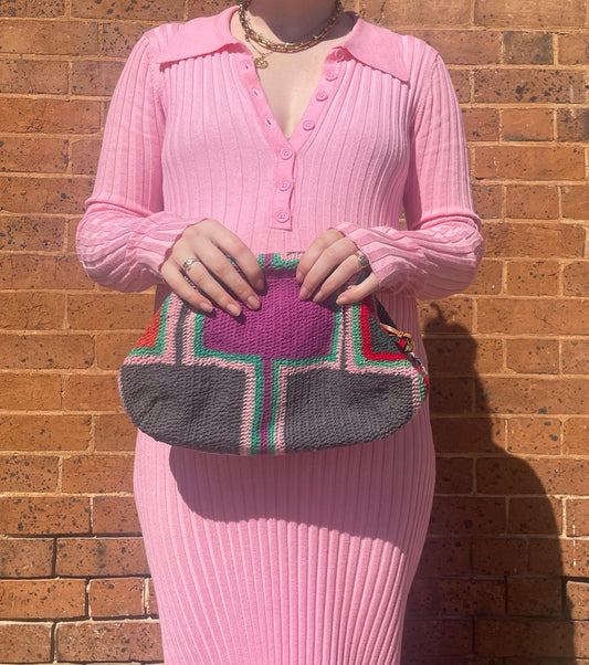 Malo Malo Clutch in Grey, Pink, Red, Green and Purple
