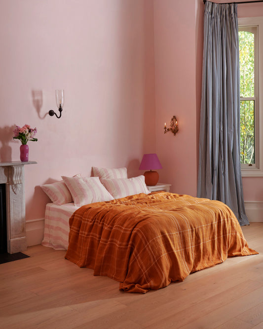 Santa Monica Pecan Tartan Linen Quilt Cover