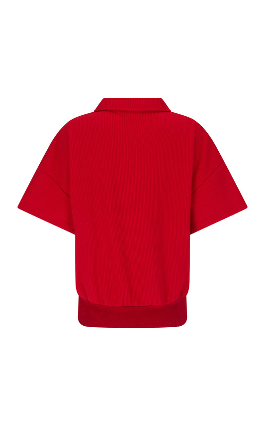 Waffle Short Sleeve Sweatshirt in Poppy Red