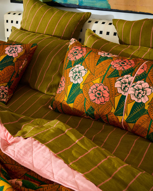 Tarragon Stripe Organic Cotton Euro Pillowcases (Set of 2)