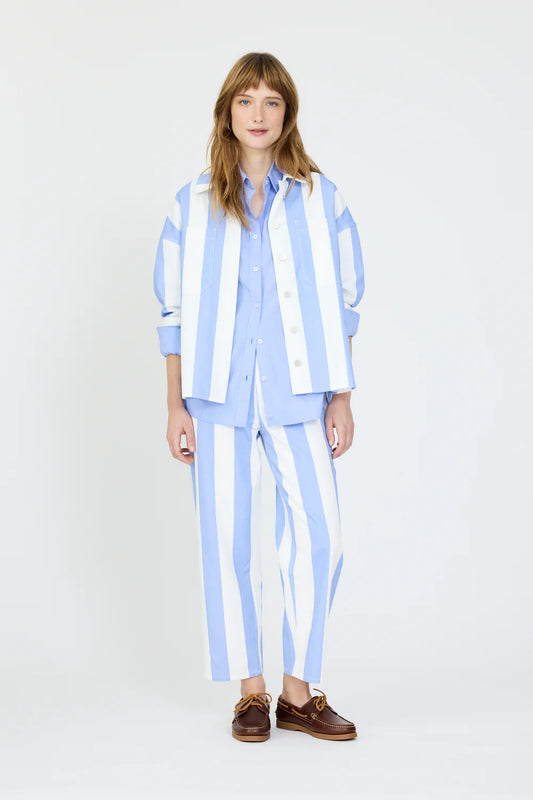 Amaya Striped Denim Shacket in Grape Mist and White