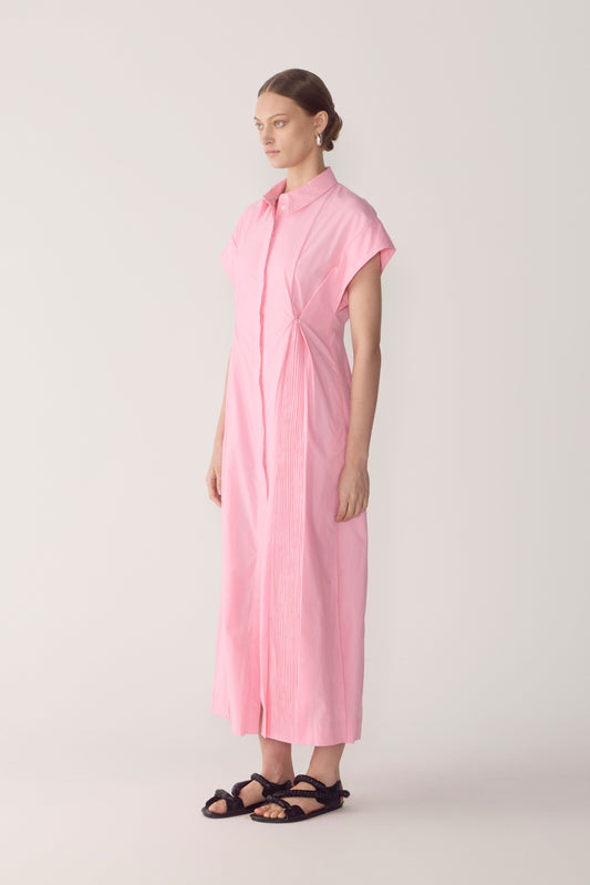 Mara Oversized Long Sleeve Shirt in Primrose Pink, Natural and True Red Stripe