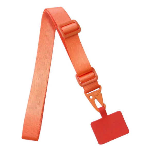 The card insert is placed inside your existing phone case and the strap is fully adjustable. Does not include a phone case.