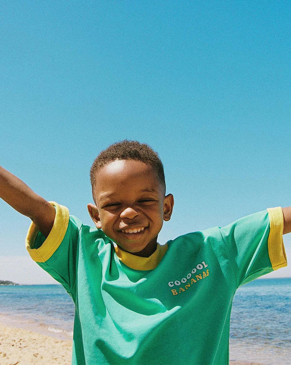 The Rascal Ringer Tee is pure retro joy in tee form! Boasting an oversized boxy cut with those oh-so-cool dropped shoulders and colour-blocked sleeves, this little ripper's got serious style credentials. Sturdy ribbed edges, quirky badges, and a standout puff print make it the ultimate statement piece for kids who march to their own beat.