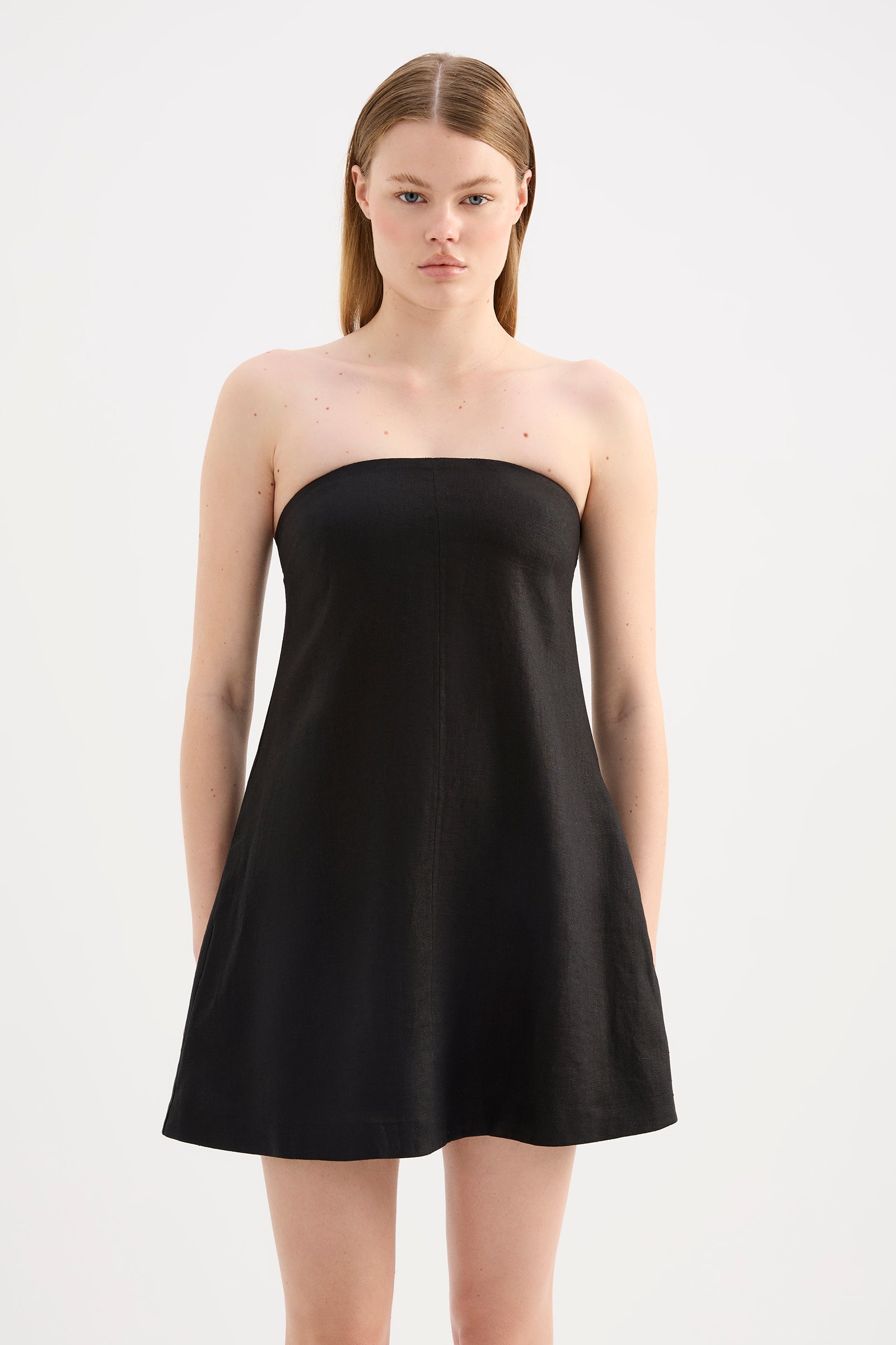 The Elyse Linen Mini Dress is made from 100% linen, garment-washed for a soft and breathable feel. This strapless style features a fitted bodice and a breezy A-line mini skirt. Finishing touches include side seam pockets and a centre back zip closure. The dress is fully lined for added comfort.