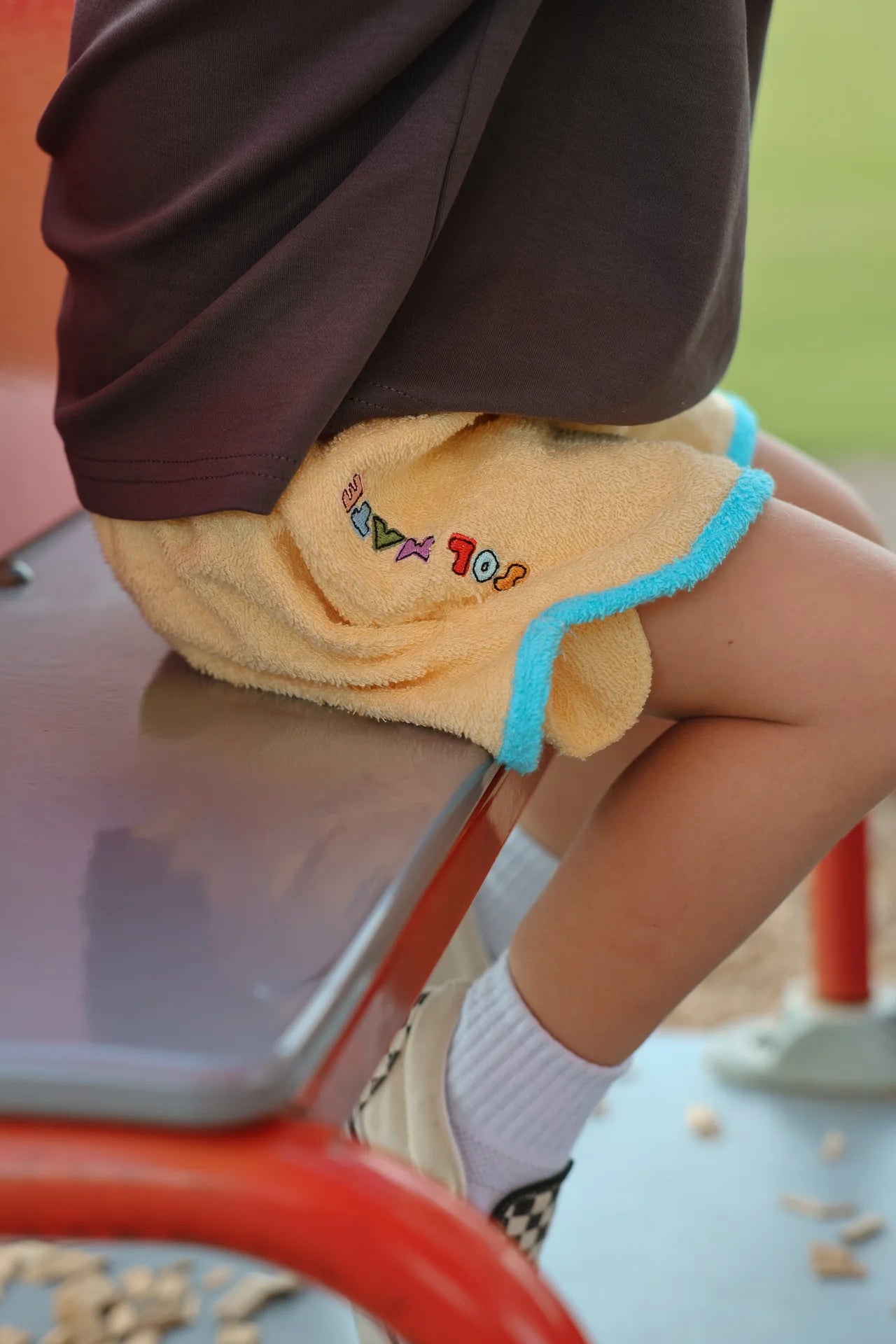 These terry towelling shorts are super soft and comfy, perfect for all your sunny adventures. A summer must-have, they come with handy side pockets, eye-catching contrast trims, and the brands signature SOL MATE embroidery. Pair them with their Colour Club Essentials Tees for a fun, mix-and-match outfit ready for anything!