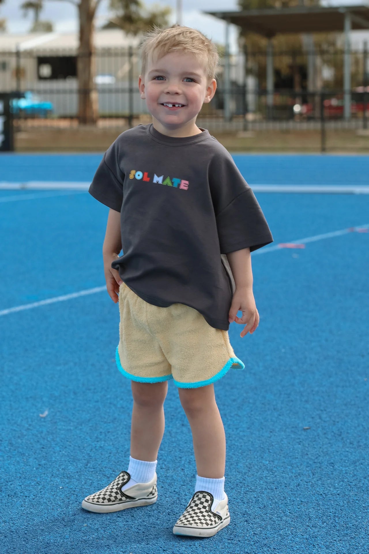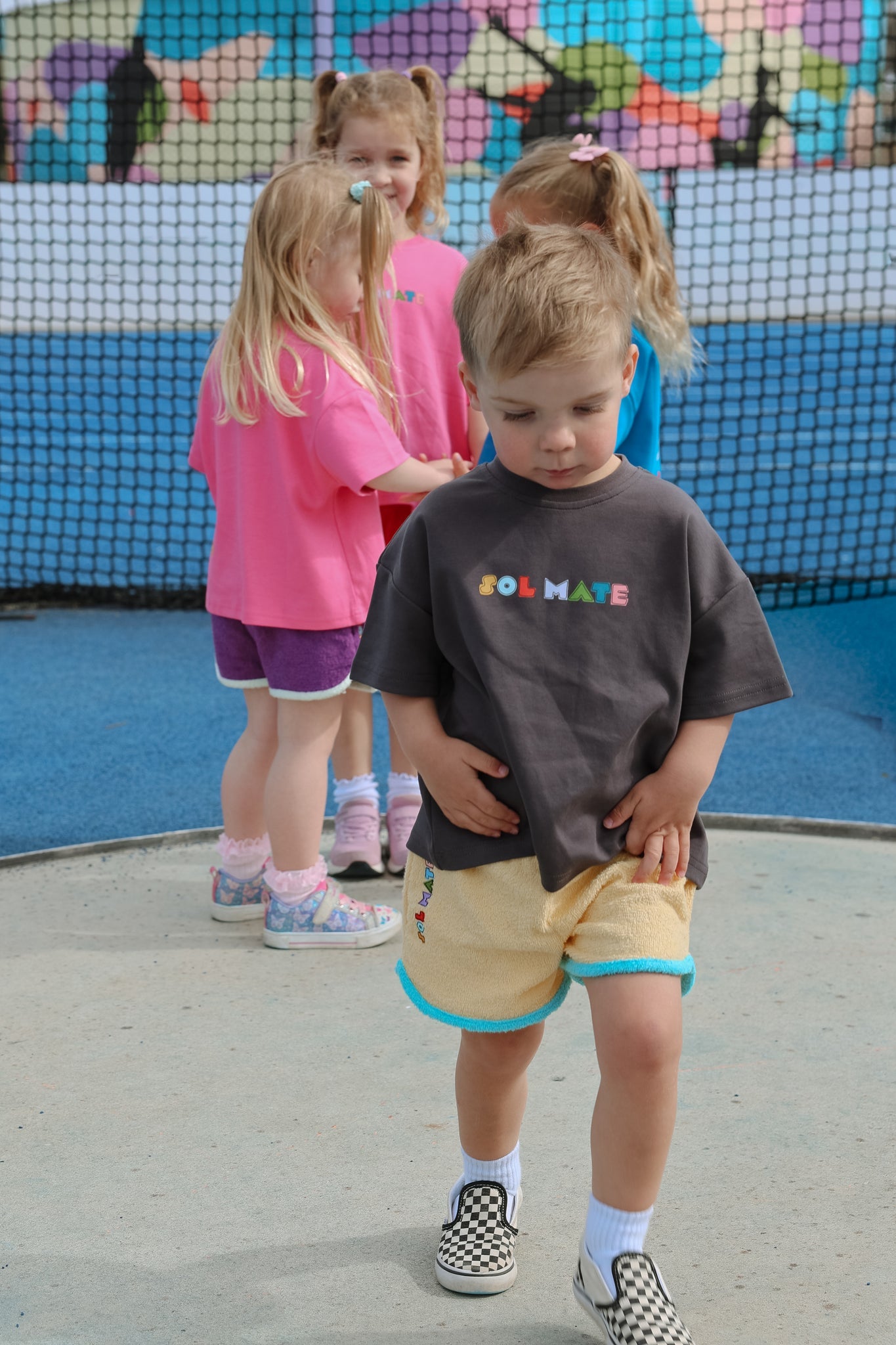 Perfect for all-day fun and sun-filled escapades, this roomy, boxy tee is as comfy as it is stylish. Showcasing the brands fresh SOL MATE logo boldly on the front and cheekily off-centre on the back, it’s the go-to favourite your little one won’t want to take off.