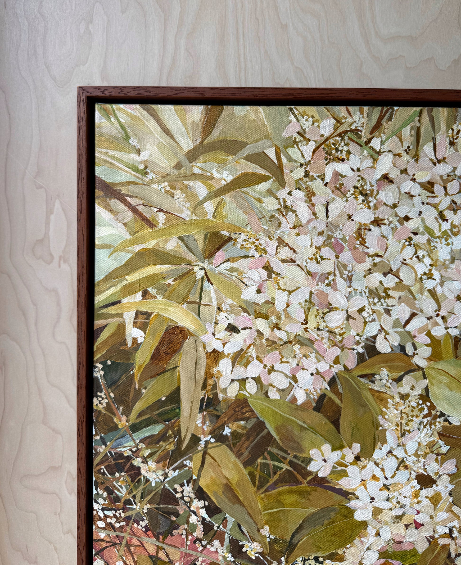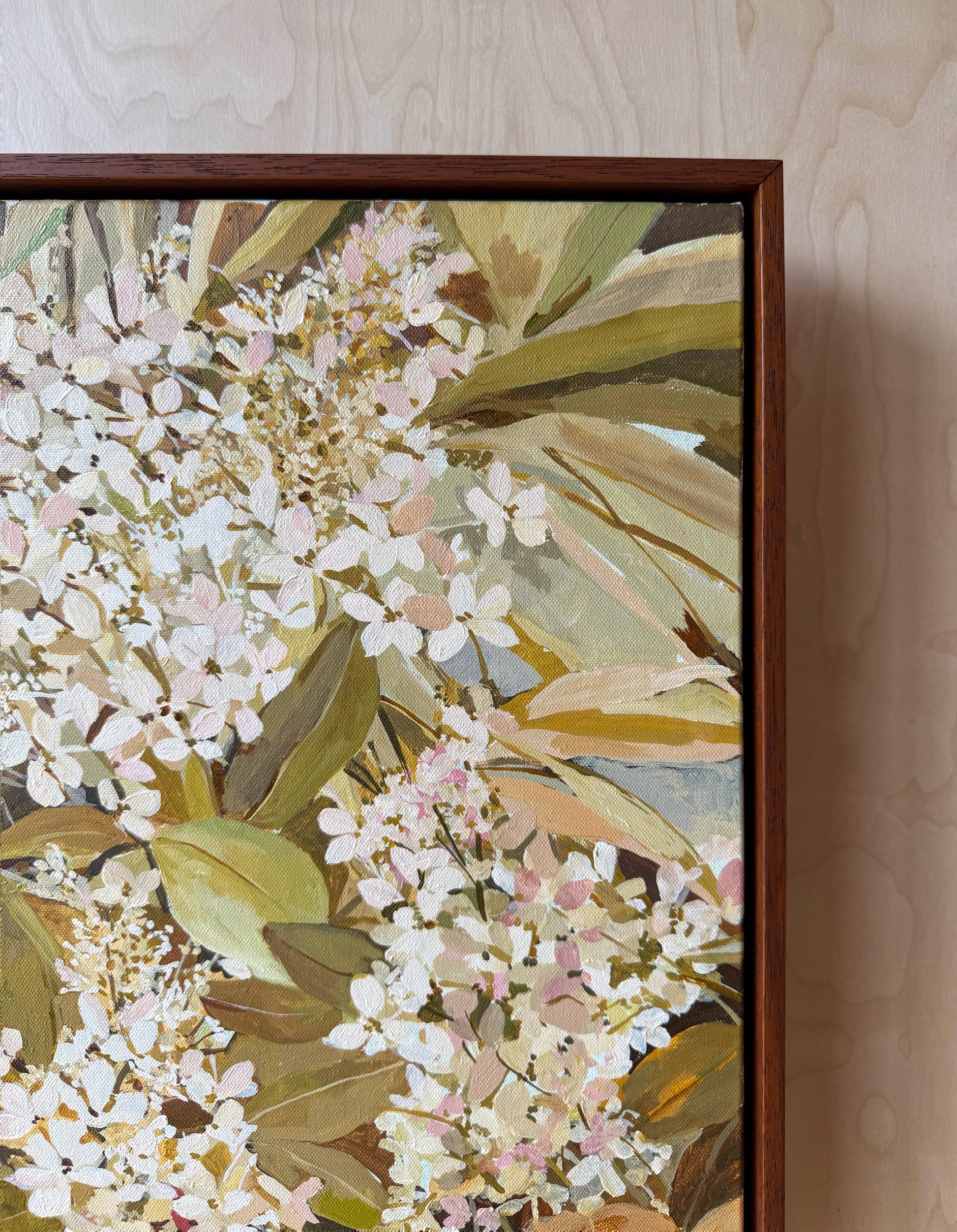 'Floravita' - Hydrangea - 63cm x 63cm - Acrylic on Canvas - Framed in Teak