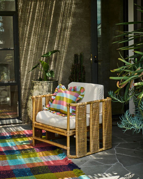 Summer’s here, and it’s time to give your space a fresh new look! Kip&Co's favourite cushion collection makes it super easy to add pops of colour, texture, and happy vibes everywhere. Say hello to the Florida Tartan Frill Upholstery Cushion: flirty, frilly, and bursting with personality, featuring a chunky tartan pattern in cheeky pinks, greens, and blues. Made from tough upholstery linen and edged with the sweetest frill, she’s not just pretty; she’s built to last and brighten up your home for good.