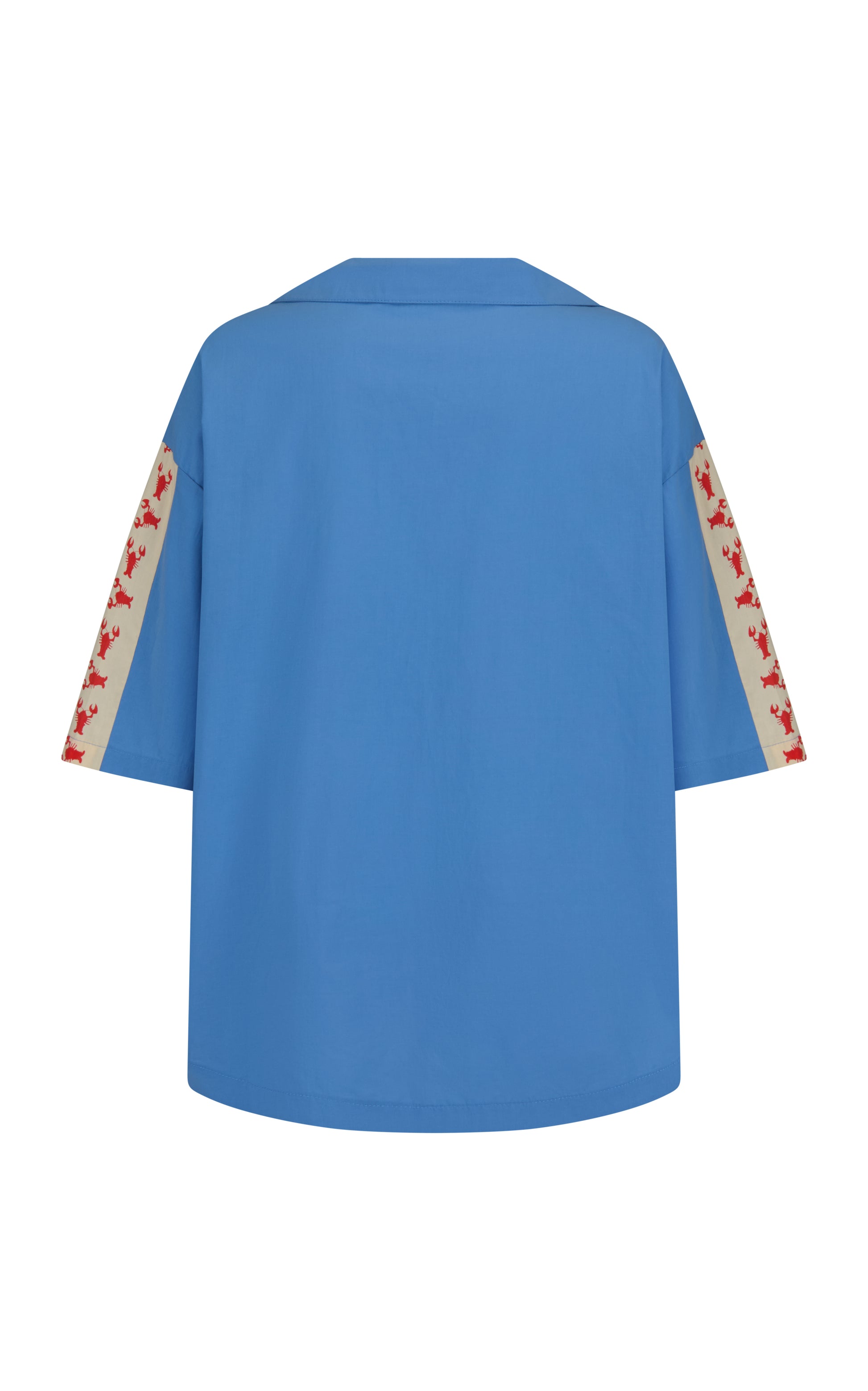 The Lobster Shirt in French Blue is your go-to for easygoing style and breezy comfort — ideal for sunny days by the water and chill evenings in coastal spots. Made from light, breathable 100% cotton poplin, it features subtle lobster accents on the sides and cool tortoiseshell buttons. With its oversized, relaxed fit, it’s made to wear loose and carefree, but feel free to size down if you want a snugger look. Pair it with the matching Lobster Shirt for full-on seaside vibes!