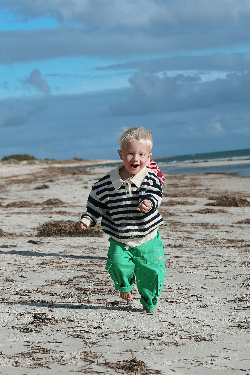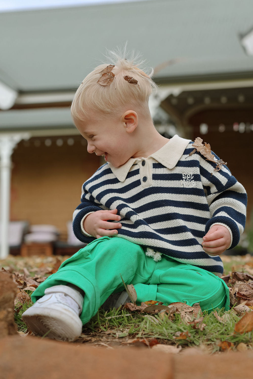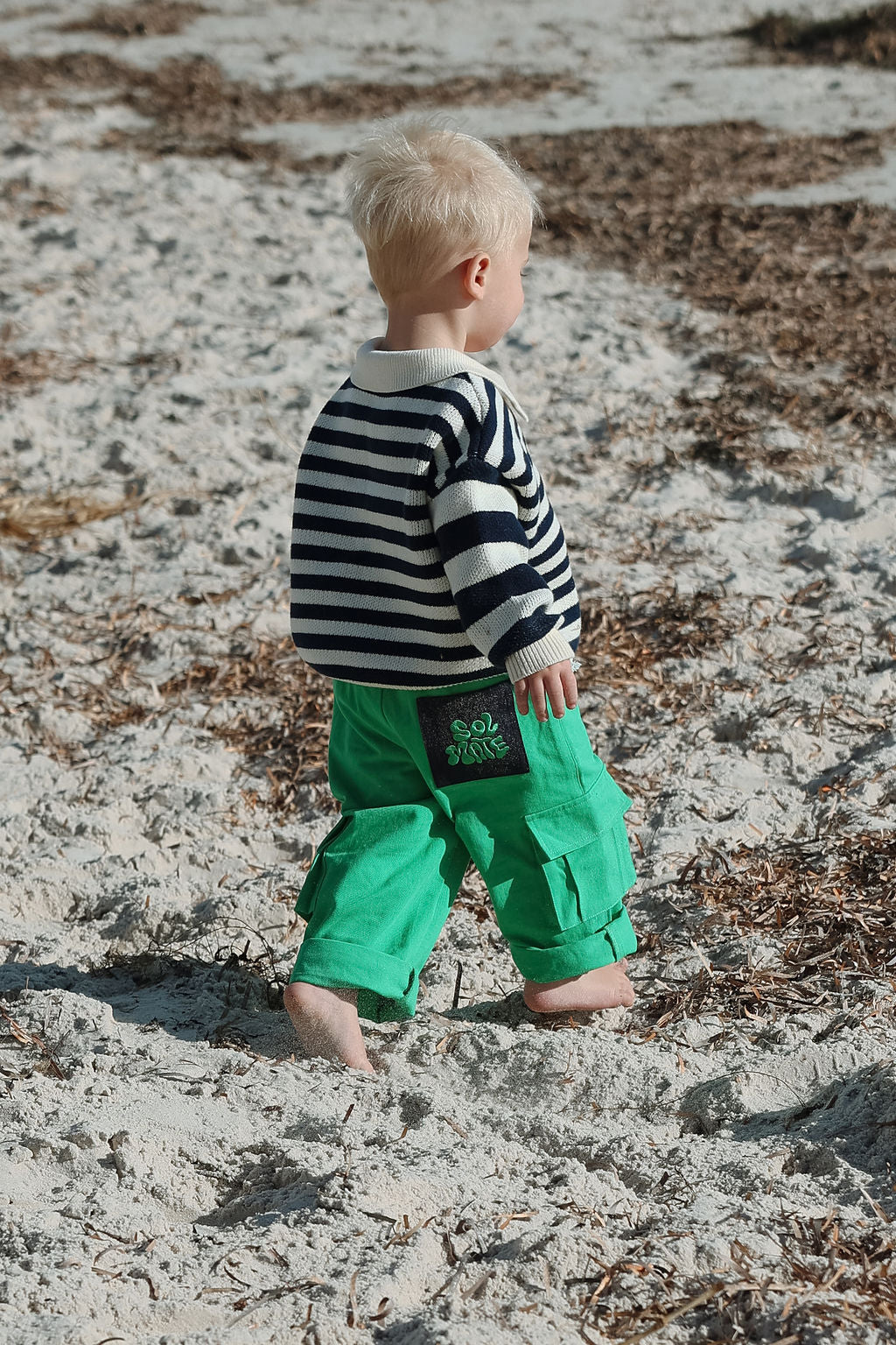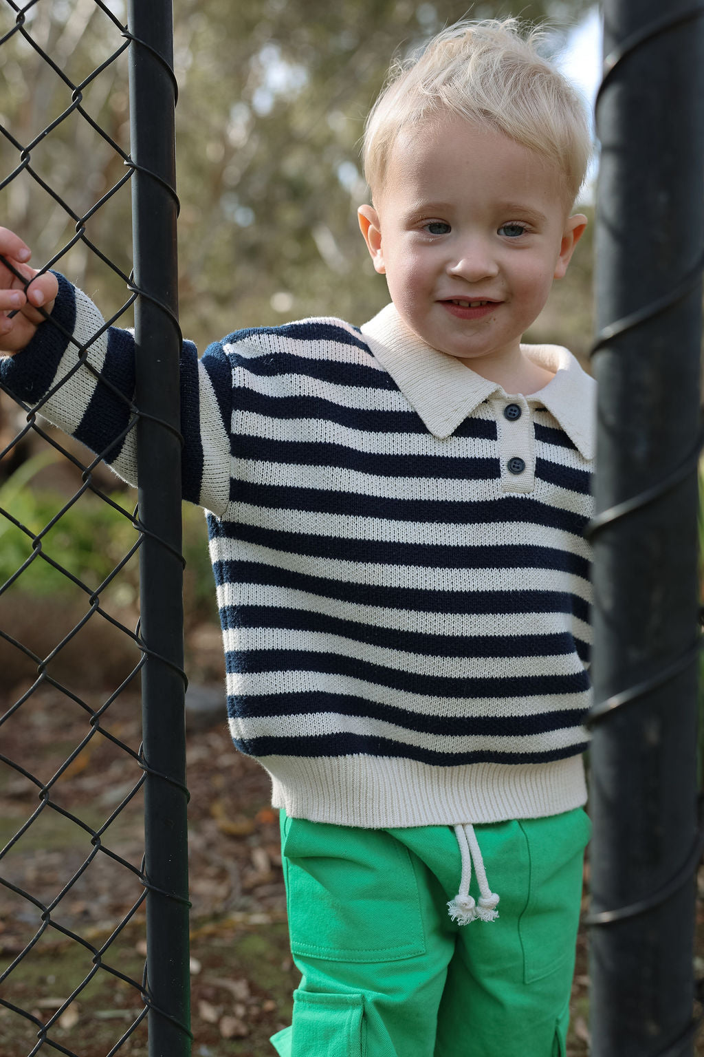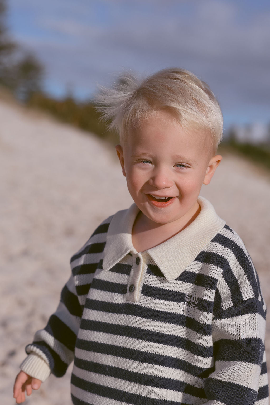 The Kai Knit from Sol Mate is a timeless collared knit featuring navy and creamy white bold stripes on the sleeves and finer stripes across the body. Designed oversized for easy layering, it’s accented with charming navy buttons and their signature “Sol Mate” embroidery. Kai brings a fun, cool vibe that’s both effortless and endlessly stylish.