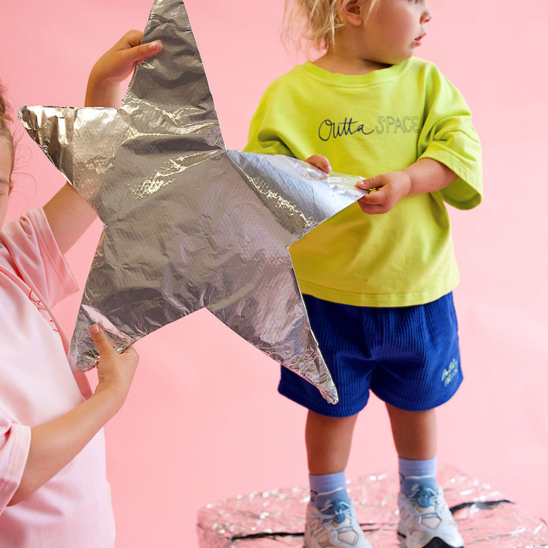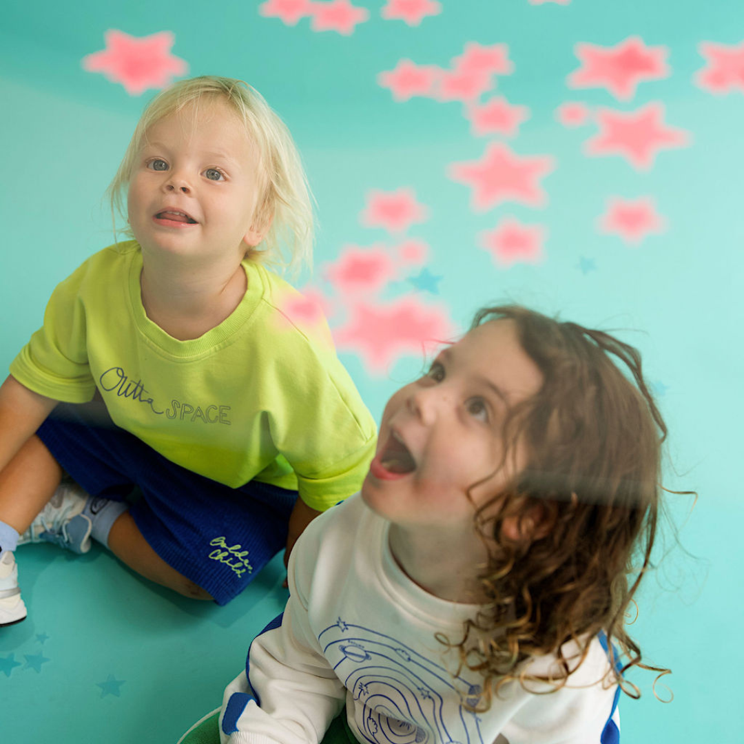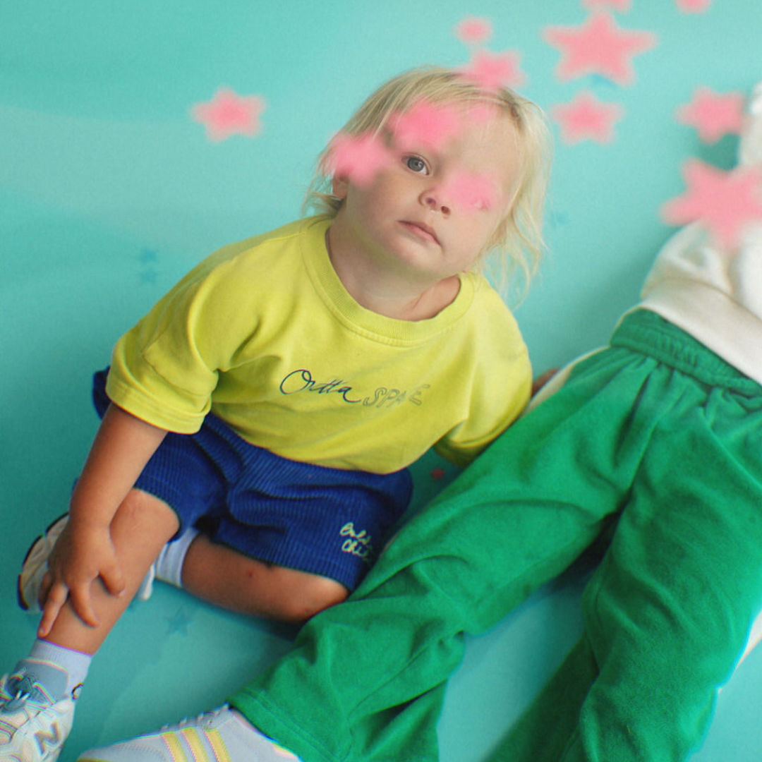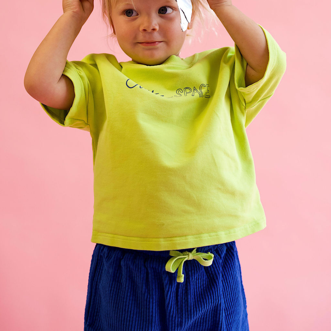 Make a cosmic splash with this vibrant neon tee from the Golden Child Outta Space collection. Designed for kids who dare to stand out, this oversized unisex shirt grows with your little adventurer while keeping them comfy during all their wild escapades. The premium terry cotton and elastane blend breathes easy and bounces back with every jump, tumble, and spin. Eye-catching Outta SPACE branding dominates the front, while an intergalactic solar system design takes over the back, because looking cool from behind matters too. Pure playful energy wrapped in wearable comfort.