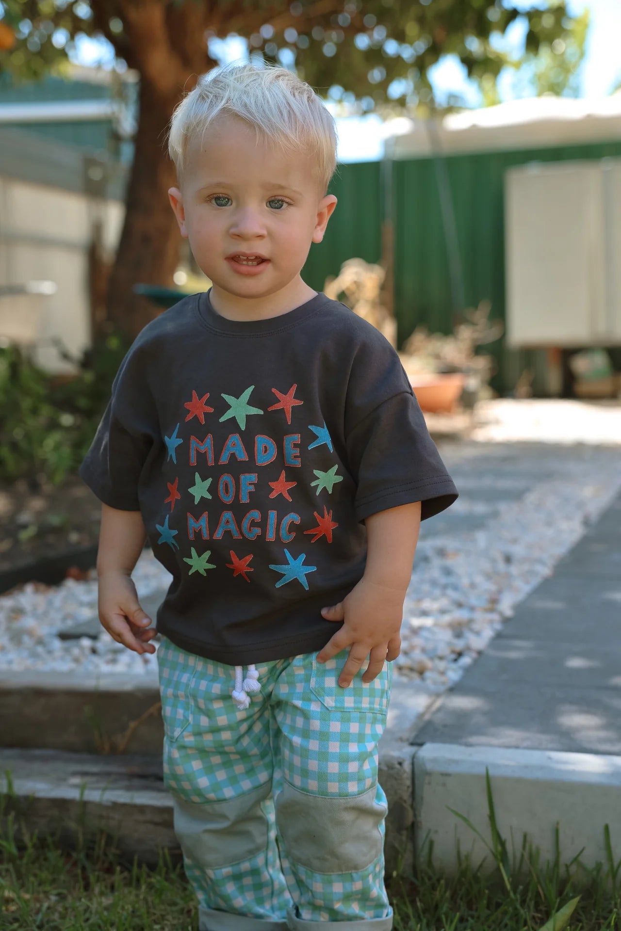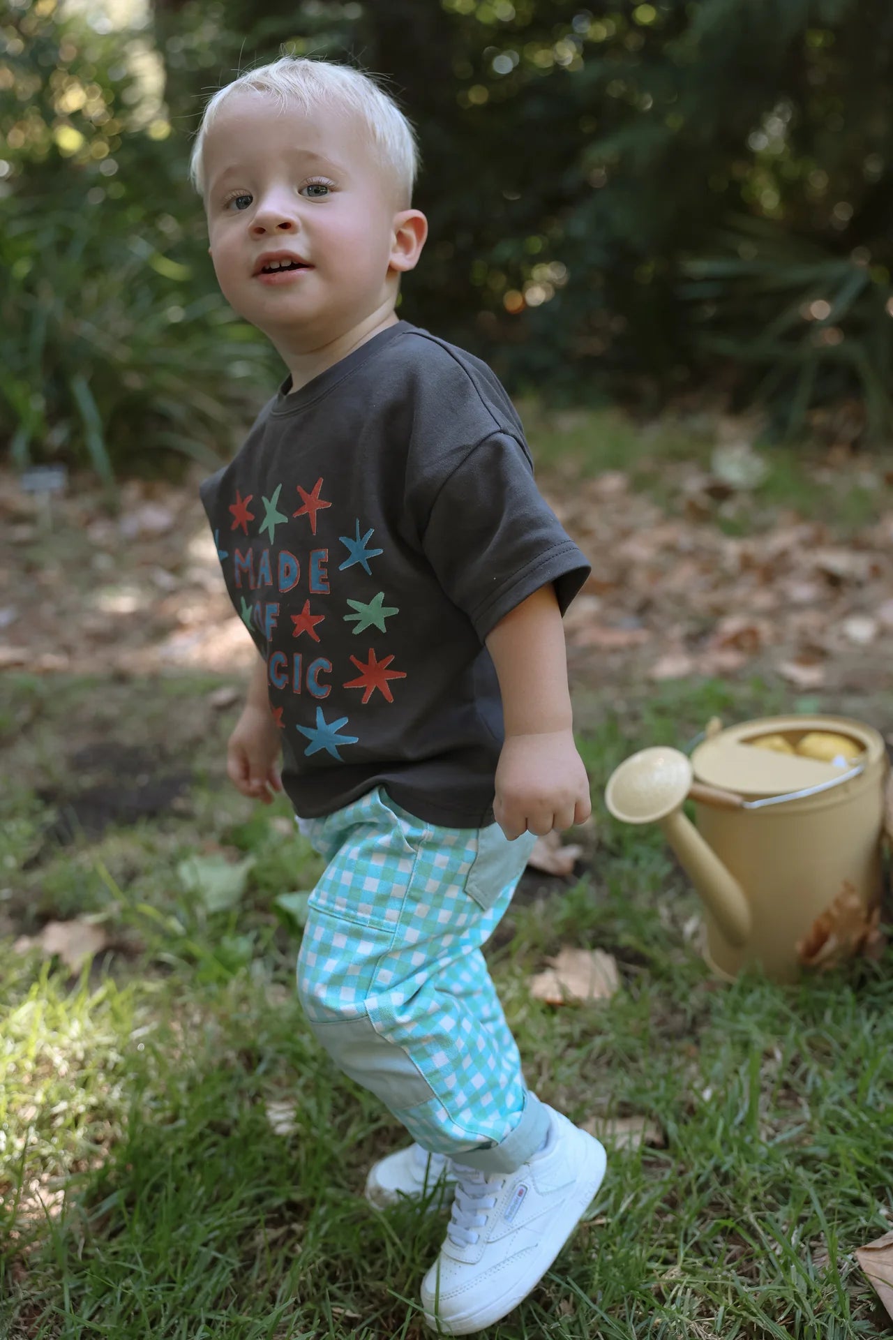 The Parker Pant from Sol Mate is perfect for your little wild one! With a soft blue and green check, exclusive to Sol Mate, contrast knee patches and hem lining (perfect for ensuring they fit for longer! Sol Mate makes these for muddy knees, big imaginations, and mummas who get it.