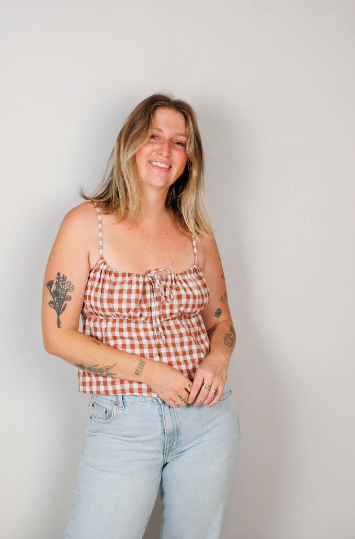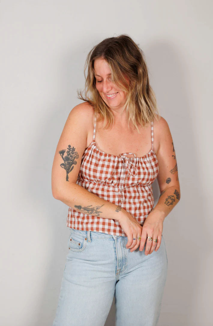 The Summer Top from Amilita is here and trust us when we say you will be reaching for this one time and time again! Made from oh so soft cotton this simple little number is the perfect rust gingham colour that will pair with Demin shorts in summer!