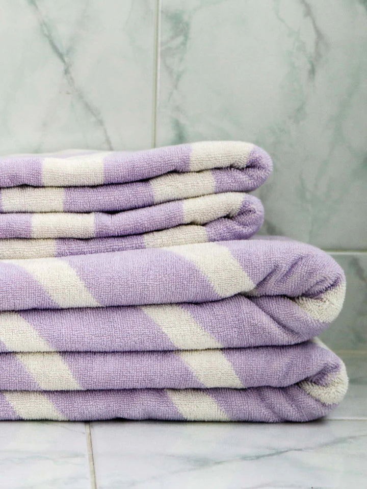 Elevate your bathroom with the Wiggle hand towel. Designed with movement in mind, the cream and lilac tones give this graphic print a calming, zen vibe perfect for your self-care space.